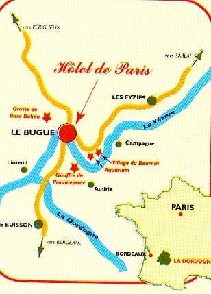 L'Hôtel de Paris est idéalement situé au centre des sites touristiques : à 40 km de Périgueux, 30 km de Sarlat et 40 km de Bergerac.
